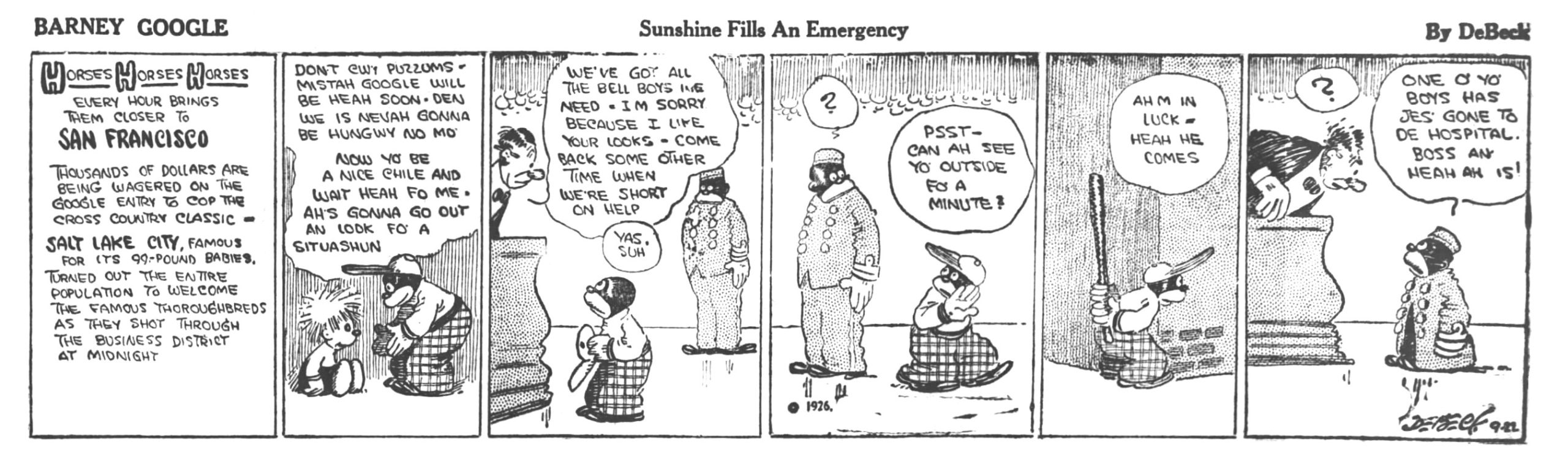 Sunshine was Barney Google’s jockey and horse handler.
